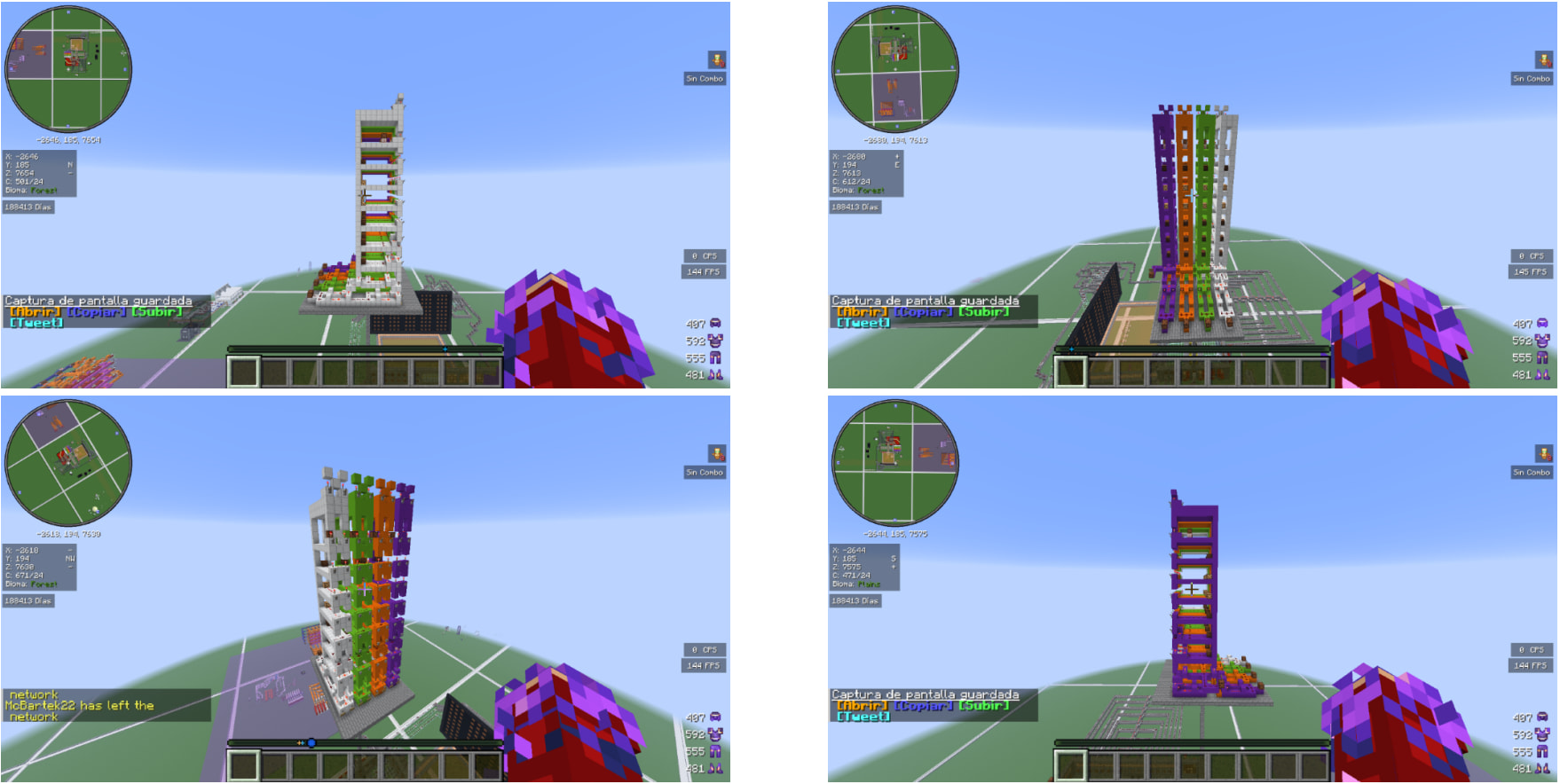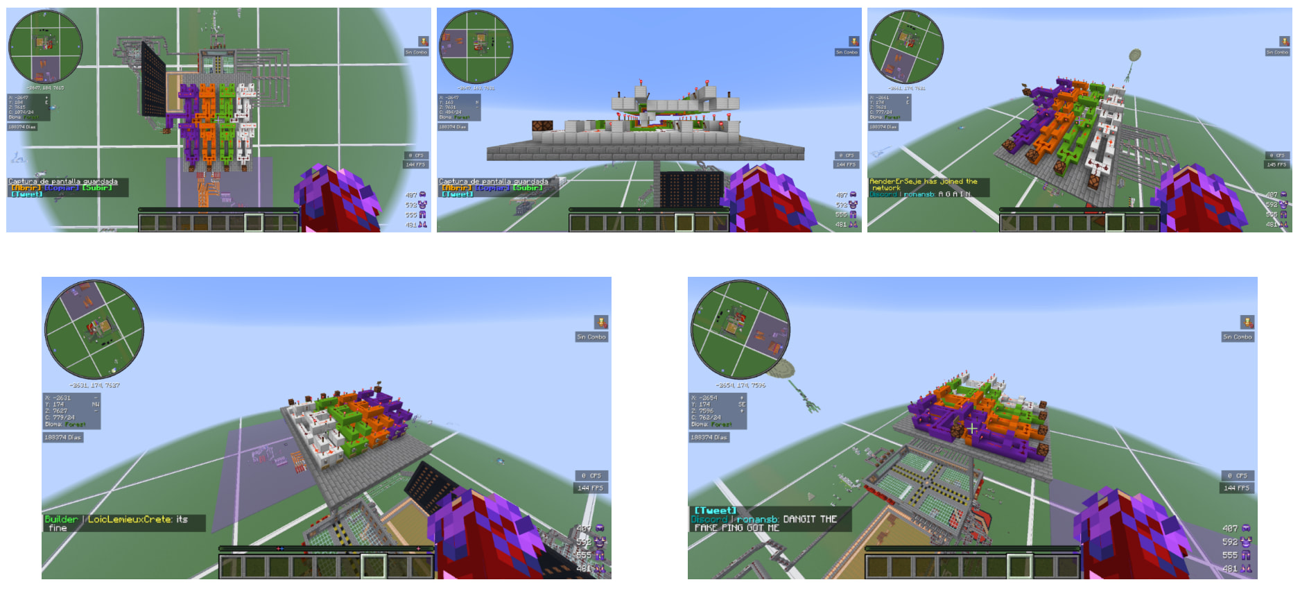 A 4-bit ALU in Minecraft performs arithmetic (add, subtract) and logic (AND, OR, XOR, NOT) on 4-bit numbers.