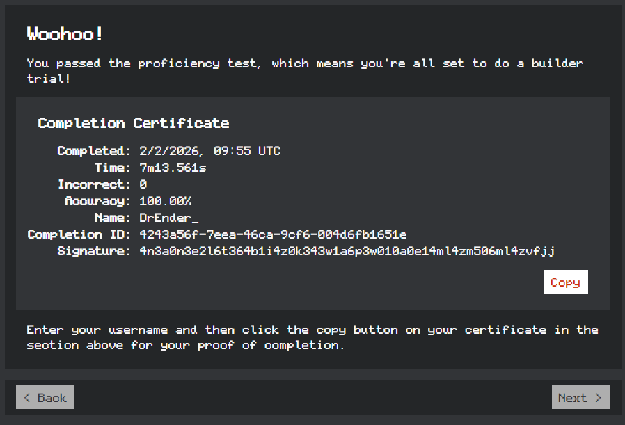Please review the FAQ below to learn more about the remainder of the process of getting Builder rank.